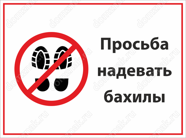 Табличка «Просьба надевать бахилы» изготавливается в нескольких вариантах: