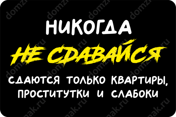 Табличка «Никогда не сдавайся сдаются только квартиры, проститутки и и слабоки»